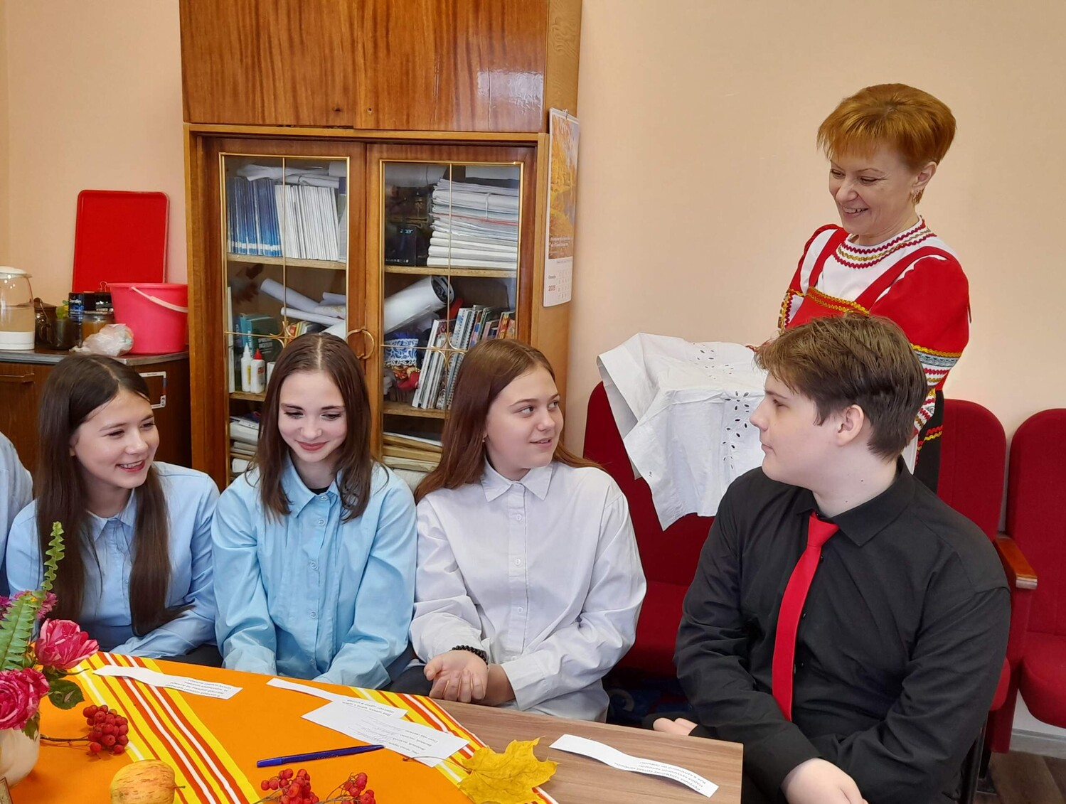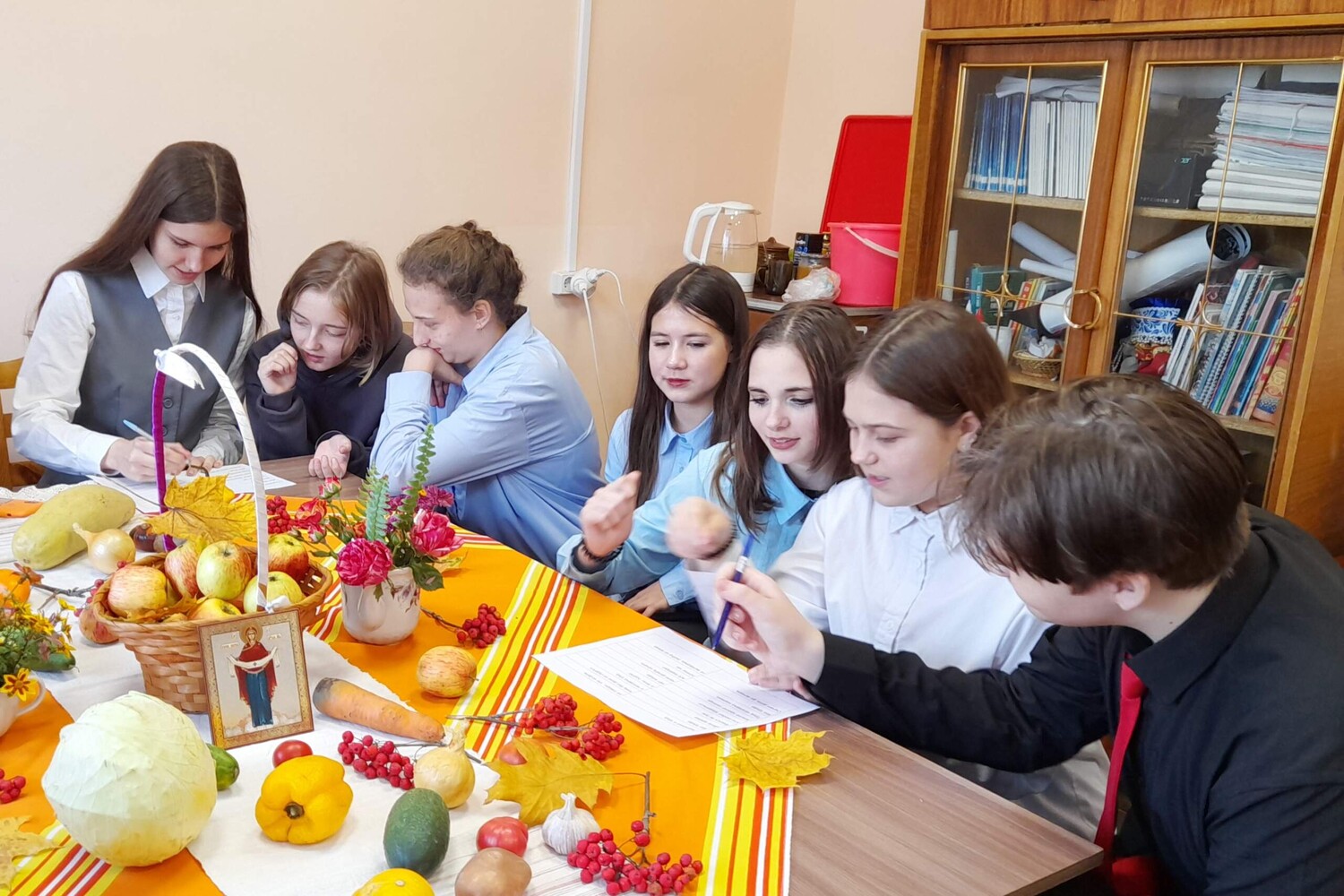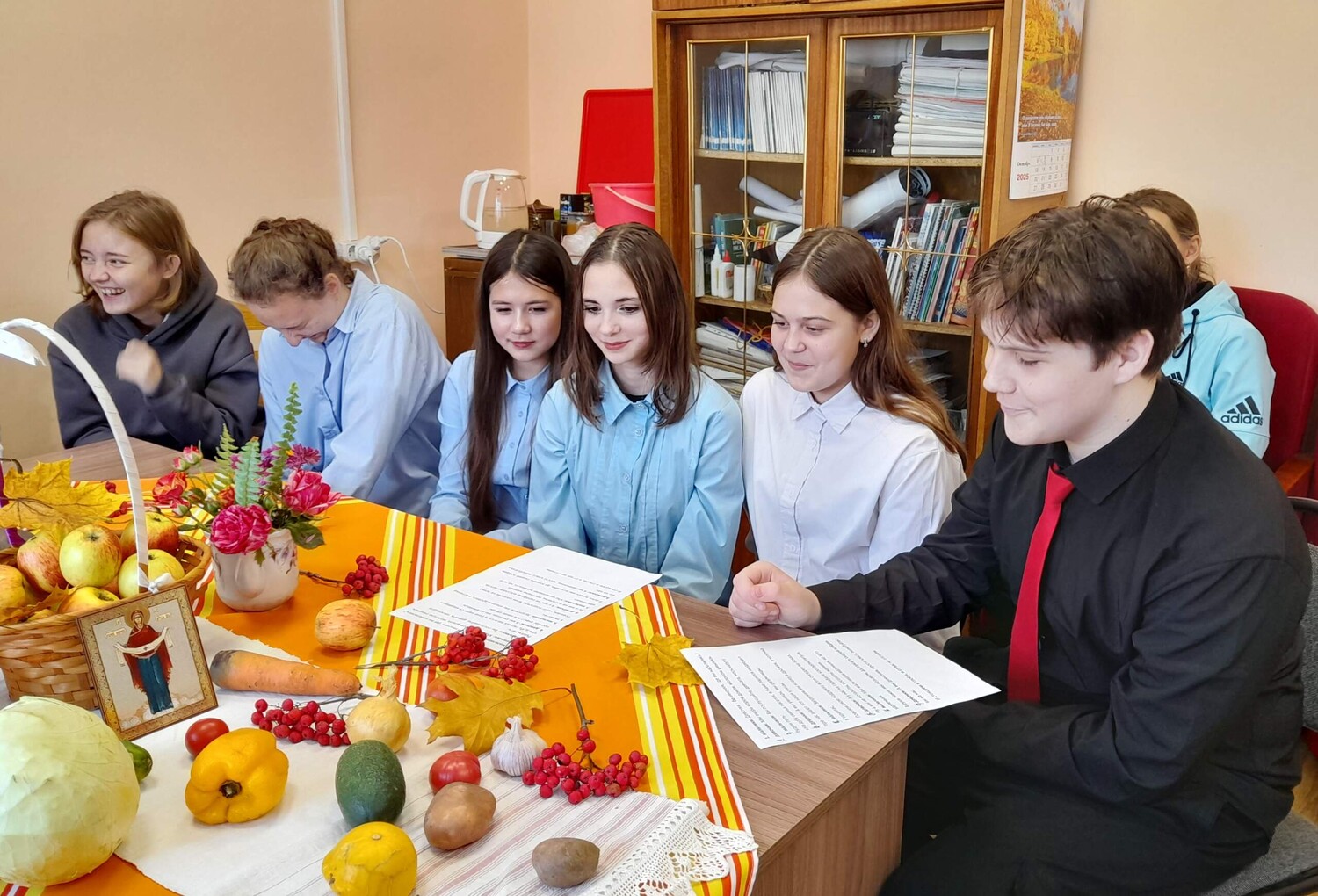 С двенадцатого века 14 октября русский народ отмечает праздник Покрова Пресвятой Богородицы. Этот день стал важной частью культурного наследия, передаваемой из поколения в поколение. Для православных людей Покров был символом утешения, надежды и поддержки в трудные времена. На Руси праздник отмечали ярмарками, народными гуляньями и осенними свадьбами. О Покрове сложено множество песен, пословиц, загадок и народных примет. Говорили: «Не утеплишь дом до Покрова — всю зиму будешь мёрзнуть». «Если Покров весело проведёшь, то жениха хорошего найдёшь». «Придёт Батюшка Покров — девке голову покроет». «Какова погода на Покров, такова и зима будет». Чтобы дети не болели, их выводили на порог и поливали водой через сито. Хозяйки пекли блины, веря, что это принесёт тепло и сытость в дом на всю зиму. В Рогнединском районном доме культуры в преддверии праздника Покров прошла познавательно-игровая программа «Батюшка Покров». Мероприятие посетили ученики 8 «А» класса местной школы. Детей познакомили с историей и традициями праздника. Они разгадывали загадки, связанные с сельским хозяйством, и вспоминали пословицы о труде, ведь для крестьян Покров означал завершение уборки урожая. Также ребята соревновались в скороговорках и потешках, пробовали фрукты и овощи, гадали. Время прошло весело и познавательно. | |